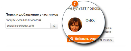 Важно! Поиск осуществляется по полному совпадению email. Пользователь должен быть зарегистрирован на сервисе. Для гарантированной идентификации пользователя рекомендуем заранее попросить его максимально полно заполнить данные своего профиля.
